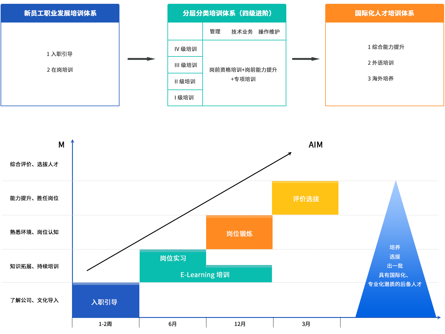 在搭建員工自主學習平臺的基礎(chǔ)上,建立了以支撐公司戰(zhàn)略發(fā)展為宗旨,以滿足企業(yè)發(fā)展和個人需求為導向,以提升員工專業(yè)能力、創(chuàng)新能力和綜合素質(zhì)為重點的戰(zhàn)略型、階梯式培訓開發(fā)體系。